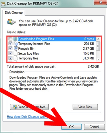 Click “Start” type “Disk Cleanup” and press “Enter” key. Select your primary partition (Windows installed drive, in most cases C:/ drive) and scan it for junk files. After few minutes, it will show a list of unnecessary files and simply select all these check boxes and start cleaning your drive.