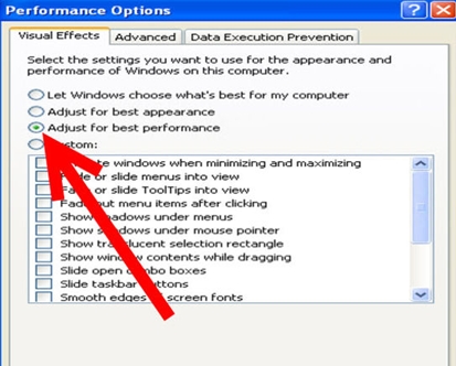 Windows 8 and 8.1 – Search for “adjust visual” in Windows 8 Start menu, Choose “Adjust the appearance and performance of Windows”,  Click “Settings” then select “Adjust the appearance and performance of Windows” in the Settings are in the top left, Select “adjust for best performance” in the Performance options box that appears. Then Click Apply.