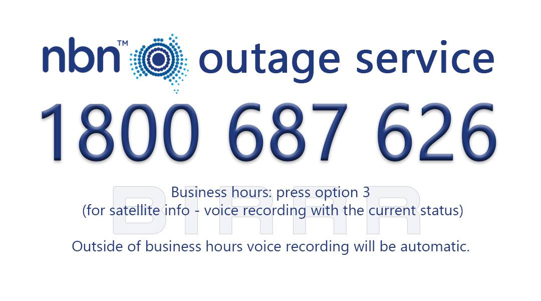 Until now, BIRRR has spent considerable time troubleshooting nbn issues – we now ask that these issues are directed to NBN or your provider. It doesn’t mean we don’t care, or can’t help if you continue having issues after you have tried these alternate contacts.