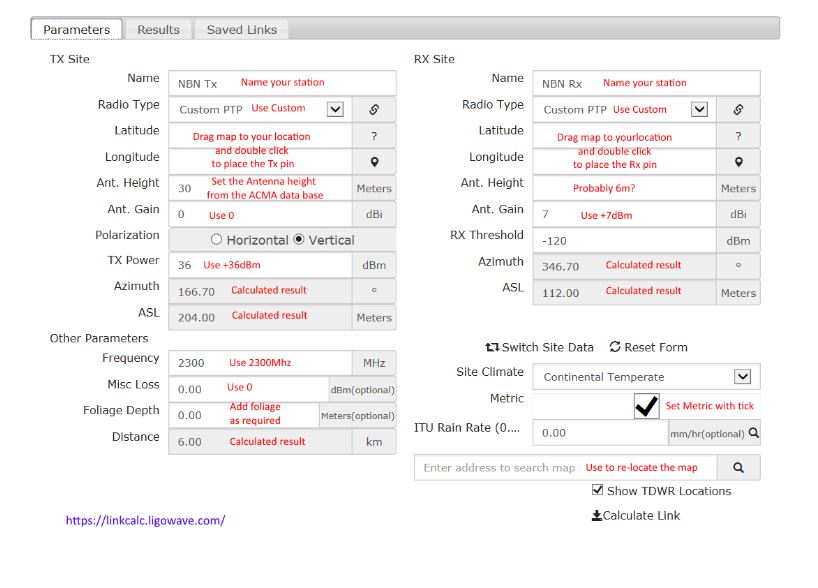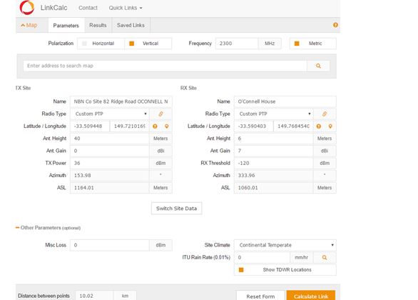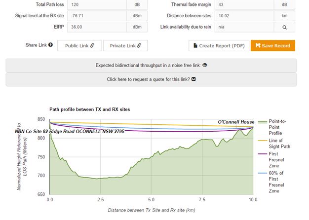 This calculator is ‘just for fun’and may bear no resemblance to the levels that the installer actually records. It is to be used only as a guide, and for preparing a file to send to NBN (or your RSP), so they can consider your case. On the ground reasons may mean you will still not get NBN Fixed Wireless such as dense tree cover, no actual line of sight, interference issues.