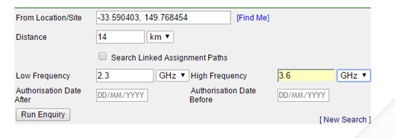 4. Go here and type in the GPS coordinates to see what Fixed Wireless towers are within 14km of you. Complete the table as follows