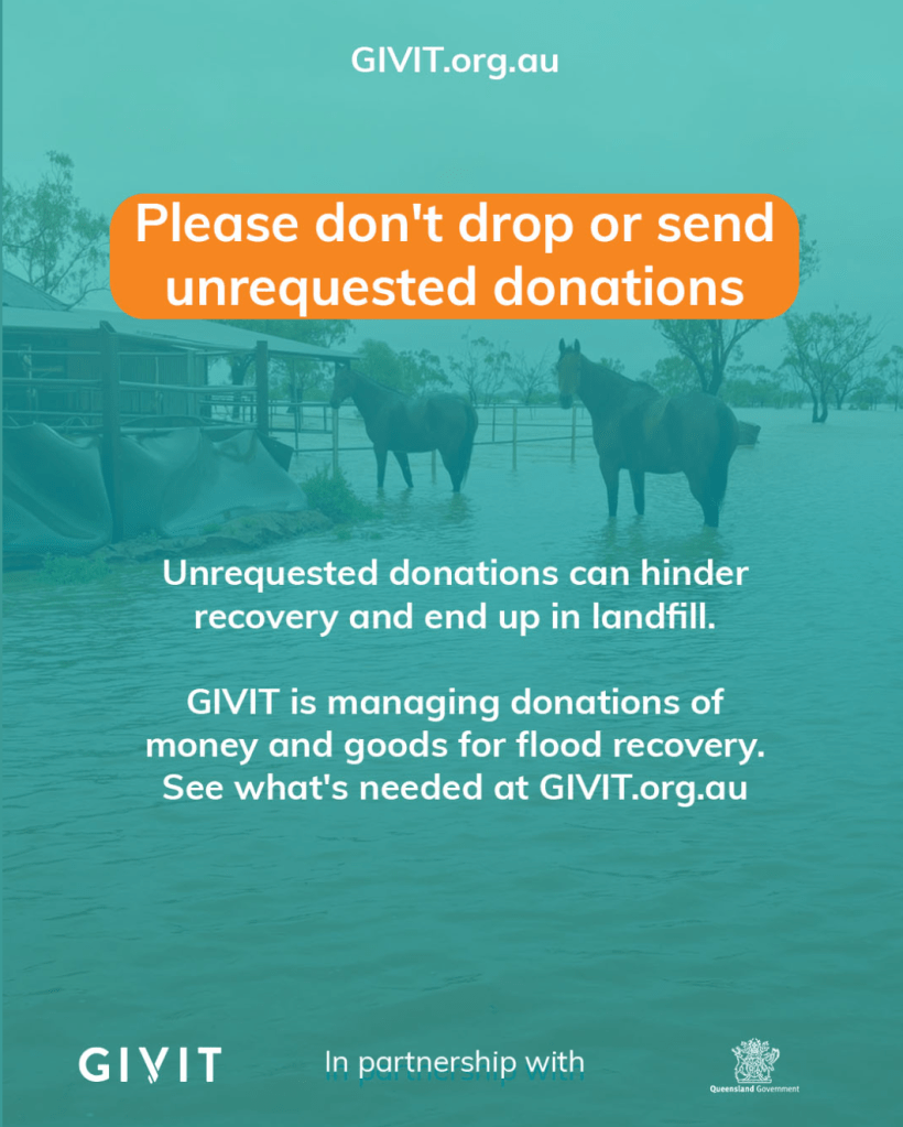 Please note biosecurity conditions and fire ant exclusion zone conditions are required on all donated fodder for Western Queensland. If you are coordinating fodder donations, please ensure that fodder meets biosecurity restrictions and does not contain invasive weeds, seeds and pests including fire ants to prevent introducing them flood affected properties and distribution centres.